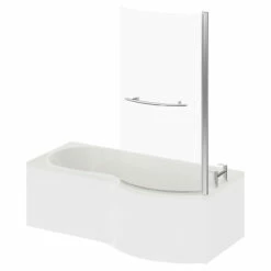 Plage 1700mm Right Hand P Shaped Shower Bath With Towel Rail Bath Screen And Front Bath Panel