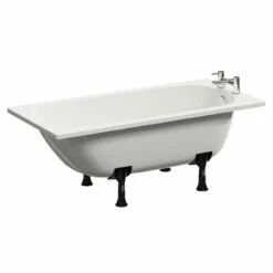 Now, you can create your very own Victorian-style bathroom in the comfort of your home. Simply start with the centrepiece of the room, a quality Victorian-style bath. The Cassia 1500mm x 700mm Straight Single Ended Steel Bath with 2 Tap Holes including Legs is a medium sized bath that works well in most bathrooms. It is a freestanding bath so you can see the black steel legs when it’s fitted.