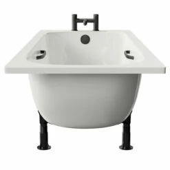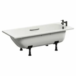 Be the first to review “Cassia 1700mm X 700mm Anti Slip Straight Single Ended Steel Bath With Matt Black Grips And 2 Tap Holes Including Legs” Cancel reply