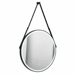 For a chic addition to your bathroom, choose the Colore Matt Black Frame with Black Strap 600mm Round Illuminated LED Mirror with Demister and Touch Sensor. In a soft, rounded design, this 600mm wall-hung mirror features a black hanging strap as well as a matching matt black frame.