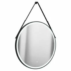 Add style and class to your bathroom with the Colore Matt Black Frame with Black Strap 800mm Round Illuminated LED Mirror with Demister and Touch Sensor. This large round mirror comes with a modern matt black frame as well as a black hanging strap for a unique touch.