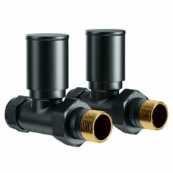 These clever valves are also available in white, black nickel and polished chrome, and there is an angled version if your pipes come out the wall. All variants are supplied in pairs and manufactured in brass to European Standard EN 1254 with BSPT male thread radiator couplings and 15mm compression inlets.
