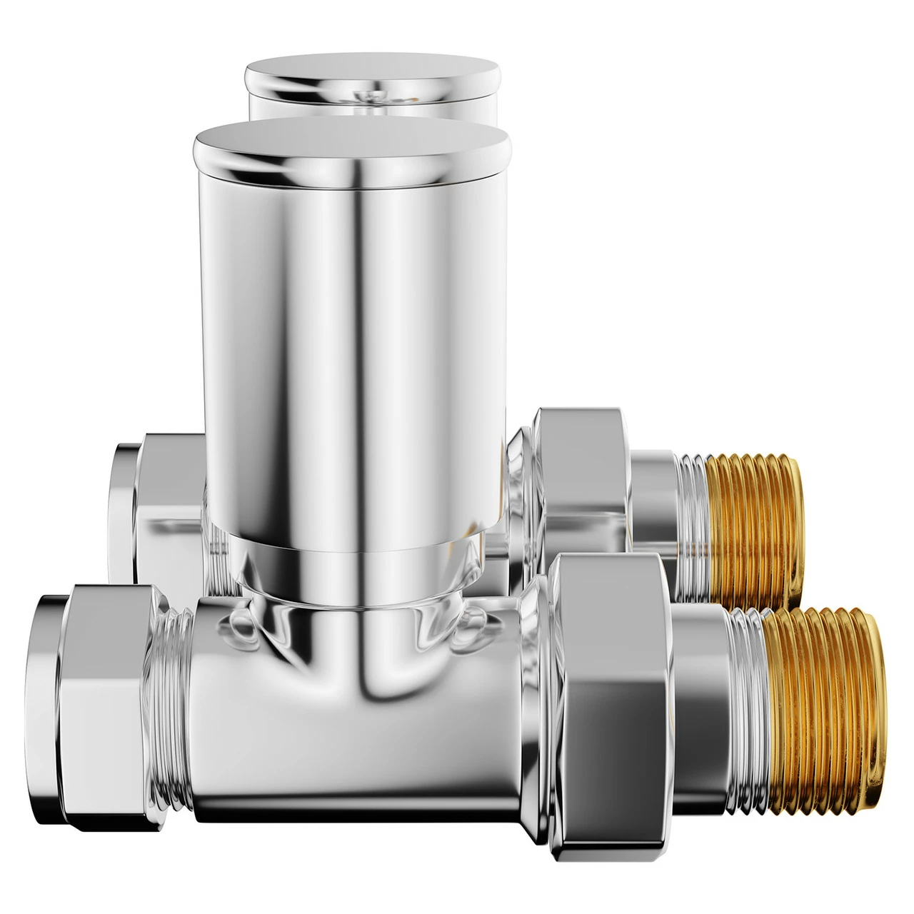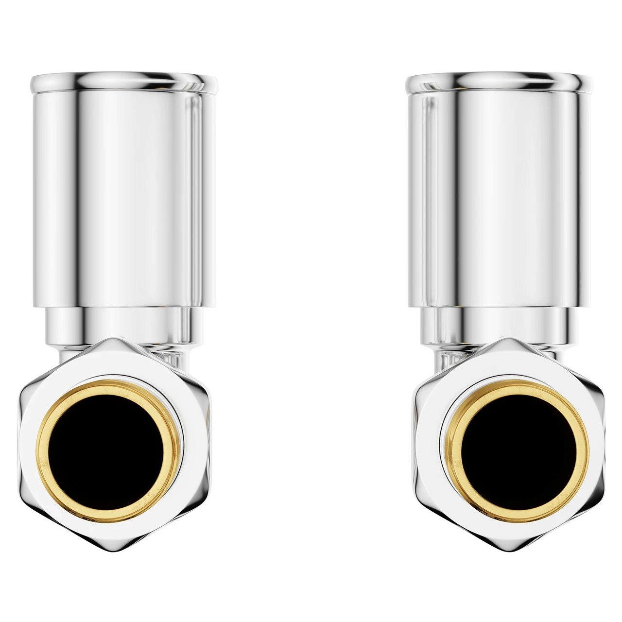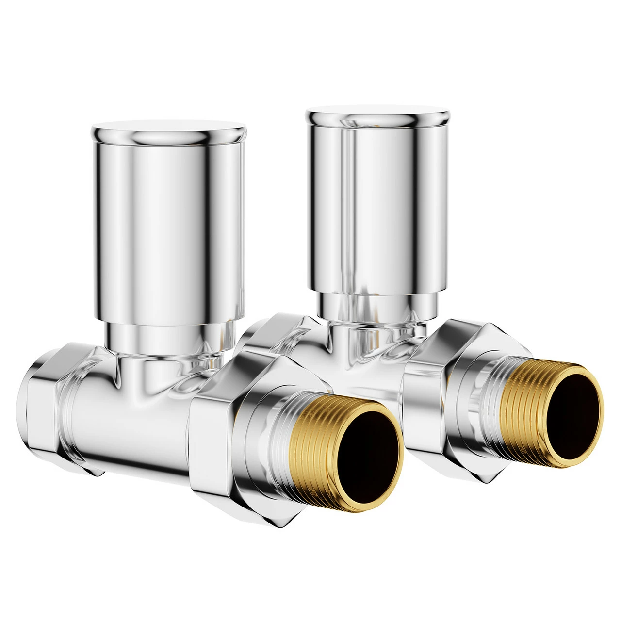 A pair of high quality straight round radiator valves with a deluxe chrome finish and twist action.