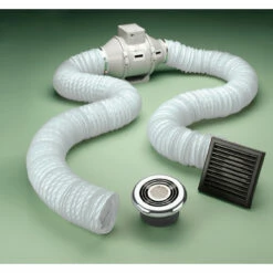 Complete kit includes fascia, inline fan, 3 metre flexible ø10cm ducting, external fixed grille and steel hose clamps