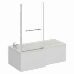 Our Loire 1700mm 12 Jet Chrome Easifit Left Hand L Shaped Spa Shower Bath with Towel Rail Bath Screen and Front Bath Panel is the ultimate addition for any efficient bathroom space. This must-have includes a luxurious shower bath, front bath panel, shower screen and legs to provide a complete bathing solution in your new bathroom.