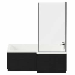 Effortlessly contemporary and highly practical, the Loire 1700mm Right Hand L Shaped Shower Bath with Bath Screen and Nero Oak Front and End Bath Panel is the ideal solution for your family bathroom.