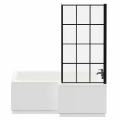 The Loire 1700mm Right Hand L Shaped Shower Bath with Matt Black Bath Screen and Gloss White Front and End Bath Panel will be a modern and chic addition to any bathroom space. The gloss white bath panel neatly conceals any plumbing of the unique L-shaped bathtub for a high-end finish. With one sloped end for bathing and the other providing ample space for showering, it really is the best of both for your new bathroom.