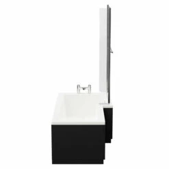 With space-enhancing practicality and a stunning modern appearance, the Loire 1700mm Right Hand L Shaped Shower Bath with Towel Rail Bath Screen and Nero Oak Front and End Bath Panel will help you make the most out of your bathroom.