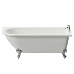 This paragon of period panache fits neatly into the corner of your bathroom to maximise space while retaining the appearance of a freestanding bathtub.